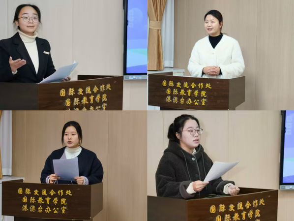 在随后的分享环节,来自化学化工学院的郭甜、教育科学学院的袁可欣、物理与电子科学学院的刘怡琳、外国语学院的陈圆圆四位同学作为获奖学生代表,依次上台讲述了她们参与项目的心得体会。她们从学术交流、文化体验、个人成长等多角度,分享了国际交流经历带来的视野拓宽、思维碰撞与能力提升,真挚的言语充分展现了“泰隆之星”国际交流成长基金项目对青年学子成长的深远影响。分享结束后,与会嘉宾为项目学生颁发了证书,肯定了他们的优秀表现,也寄予了未来的殷切期望