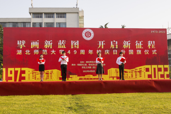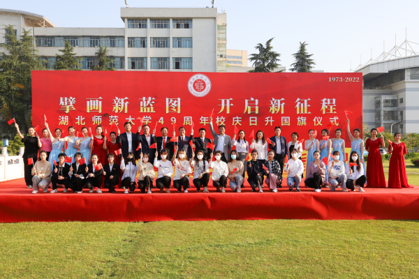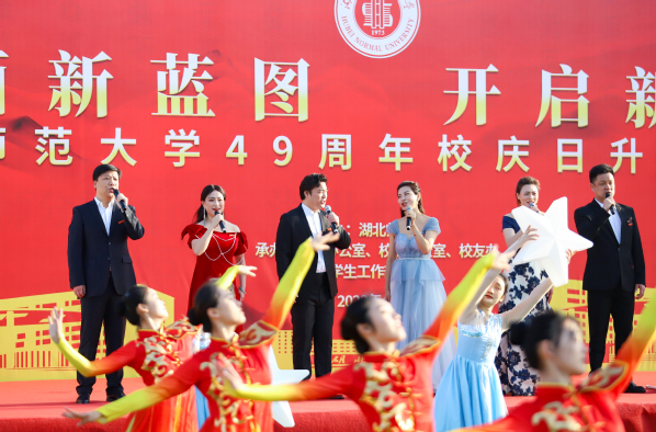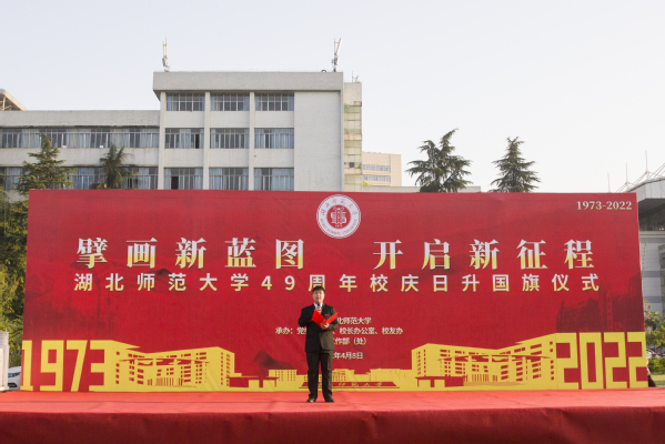 党委副书记、校长李宏与全体师生一起重温了建校以来的奋斗历程。他指出,49年来,一代代湖师人风雨兼程,求索砥砺,辛勤耕耘,劳作不息,育英哺华,拼搏奉献,用自己的行动诠释和丰富了“自强不息 尚诚厚德”的湖师精神。49年风雨耕耘,使学校成为湖北省高等师范教育的骨干力量和湖北省基础教育师资的重要基地,成为全国本科教学工作水平评估优秀学校、国家产教融合发展工程应用型本科建设高校、湖北省国内“双一流”建设高校。他勉励广大师生要紧紧抓住历史机遇期,按照“123456”发展战略体系和“三步走”的战略安排,稳扎稳打、步步为营,为实现学校“十四五”规划目标,汇聚起强大的智慧与力量。