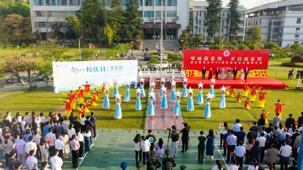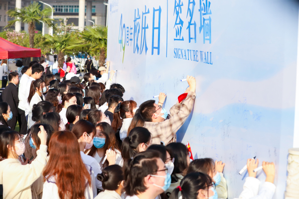 仪式最后,全体师生合唱校歌《我们是光荣的湖师人》,悠扬的旋律在校园上空久久回响,广大师生纷纷在49周年校庆日签名墙上写下对学校的美好祝福并驻足合影留念。