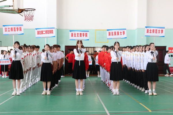 王赛玉校长宣布第八届湖北省普通高等学校体育院系体操教学比赛开幕。运动员代表、湖北师范大学曹晓叶;裁判员代表、湖北大学张业琳子依次进行宣誓。伴随着精彩绝伦的艺术体操、体育舞蹈表演,湖北省普通高等学校体育院系体操教学锦标赛正式开始。
