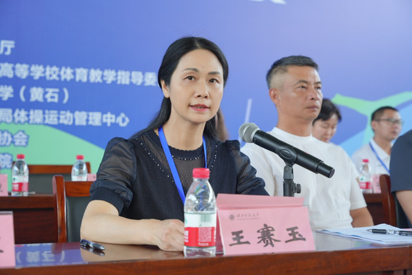 湖北师范大学党委常委、副校长王赛玉致辞。她代表学校对上级组织和领导对我校的关怀和支持表示诚挚的感谢,向各参赛高校领导、教练员、运动员表示热烈欢迎。她强调,此次大赛既是对我校体操教学水平的一次检阅,也是对我校管理服务水平的一次考验。学校将全力以赴做好赛事协调和服务工作,确保大赛安全、圆满举行。