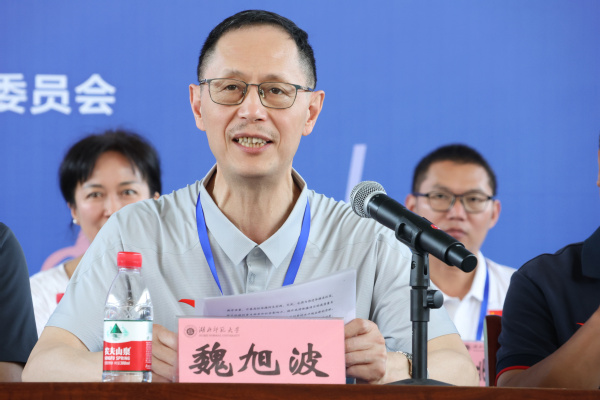 湖北省体操协会副会长、武汉体育学院国际体操学院院长魏旭波代表湖北省高校体育教学指导委员会致辞。他指出,本次体育教学锦标赛彰显了我省高校在体操教育教学和人才培养的过程中坚持健康第一的理念,为推进教育、体育的高质量发展,发挥体操全面锻炼人、发展人的良好功能作出重大贡献。我省高校要积极践行体教融合,大力普及推广体操运动,积极培育德、智、体、美、劳全面发展的、担当民族复兴大任的建设者和接班人。