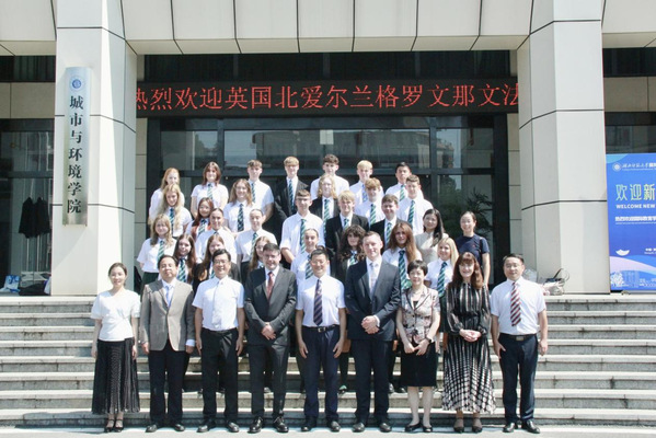 本网讯9月16日,英国格罗文那文法学校师生访学团欢迎仪式在我校科技大楼505会议室隆重举行。副校长余翔、黄石市委外办副主任徐元平、格罗文那文法学校副校长威廉・罗尔斯顿与菲利普・布伦特、教师代表罗斯玛丽·福斯特及26位来访学生共同出席。仪式由国际交流合作处处长龚波主持。余翔在致辞中表示,湖北师范大学始终坚持开放办学,积极推动国际教育协作与文化交流。自2011年与英国奥斯特大学合作建立北爱尔兰孔子学院以来,学校持续拓展中英教育合作深度,格罗文那孔子课堂更成为汉语教学与文化传播的重要窗口。他强调,青年