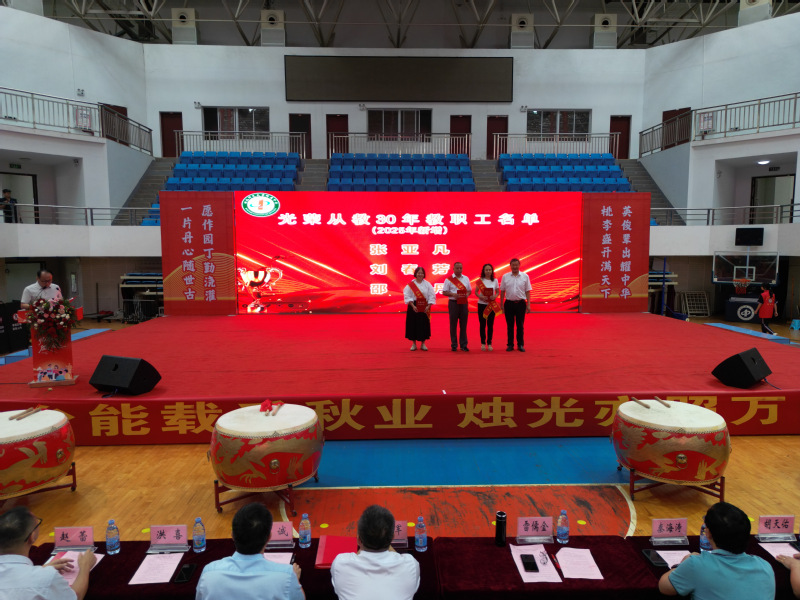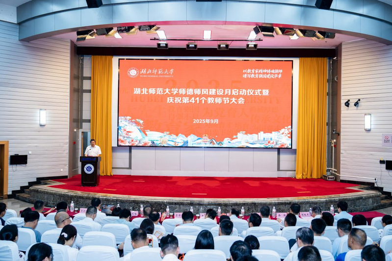 本网讯为深入贯彻习近平总书记关于教育的重要论述,大力弘扬教育家精神,进一步加强新时代高素质专业化教师队伍建设,持续营造尊师重教、崇德尚美的校园文化氛围,在第四十一个教师节来临之际,学校于9月9日上午在教育大楼报告厅隆重举行师德师风建设月启动仪式暨庆祝第四十一个教师节大会。全体在校校领导、建行黄石分行嘉宾、学校副处级以上干部、2025年教师节受表扬教师、新入职教师以及各学院师生代表共同参会。大会由校党委副书记、校长雷儒金主持。大会在庄严的国歌声中拉开帷幕。校党委副书记马列军宣读2025年师德师风建