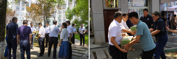 本网讯(摄影 谢道楷) 8月24日,学校党委书记李宏、校长雷儒金带领班子成员检查秋季学期开学相关工作,并走访慰问暑期坚守一线的师生员工。相关职能部门负责人陪同检查。
