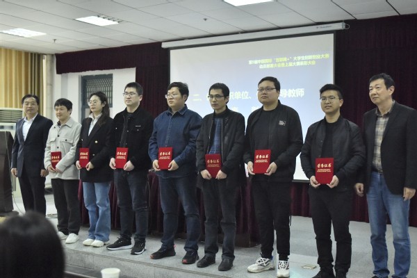 肖六亿为上届大赛中优秀组织的生命科学学院、计算机与信息工程学院、电气工程与自动化学院、物理与电子科学学院、城市与环境学院、美术学院、文学院、经济管理与法学院等8家单位颁发奖牌。夏险、张润锋、陈洁洁、石小杉、杨伦、潘敏、王君安、张新潮、涂俊铭、吴晓东等10位老师荣获优秀指导老师称号。