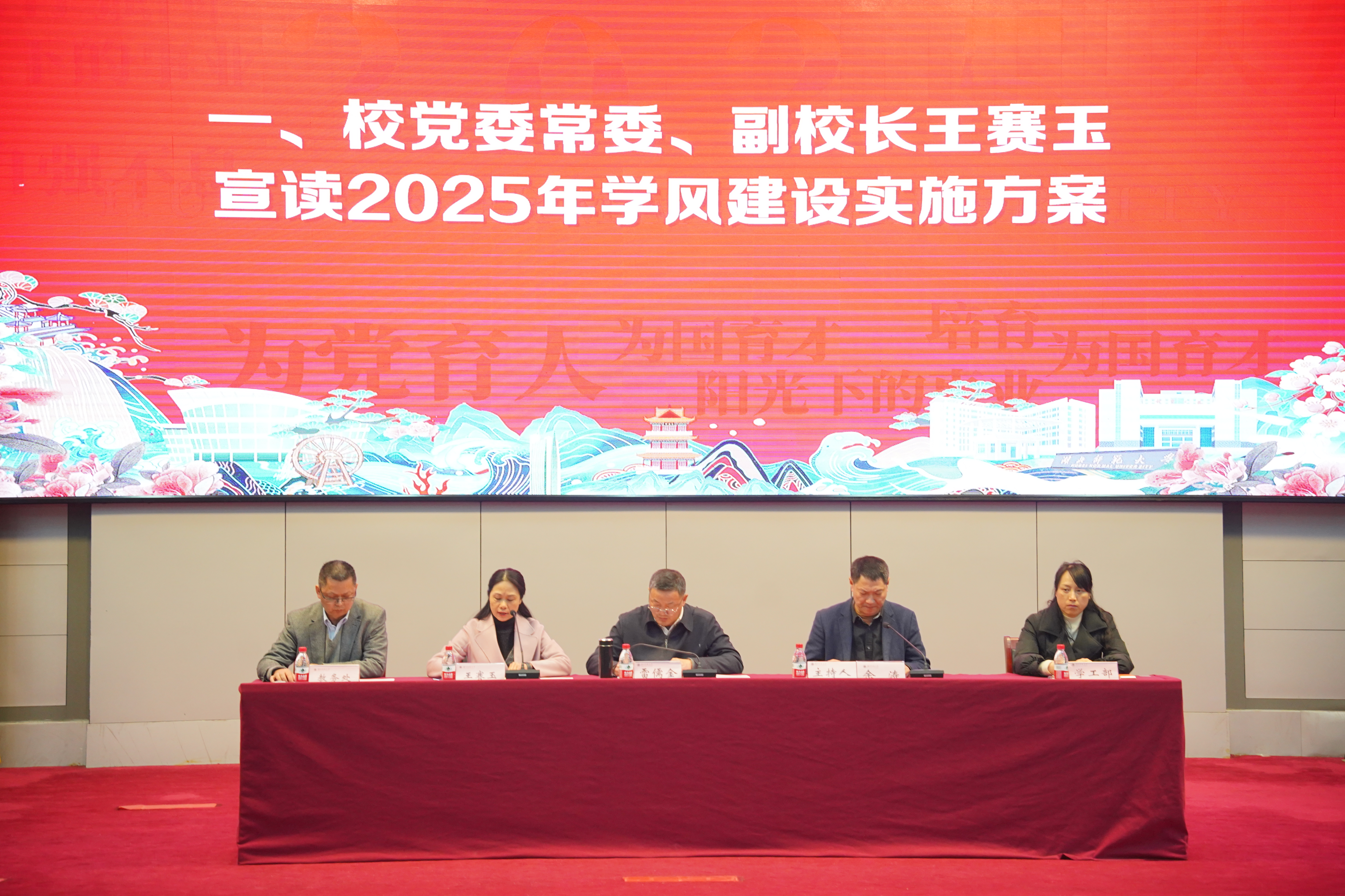 本网讯 3月6日下午,学校2025年学风建设启动仪式在教育大楼报告厅成功举行。校党委副书记、校长雷儒金,校党委常委、副校长王赛玉出席活动,纪委、宣传部、统战部、学工部、教务处、科发院、教师工作部、研究生院、招就处、国际教育学院、团委、图书馆、后勤管理中心等单位负责人,各学院分管教学工作负责人、分管学生工作负责人,教学督导,辅导员、班主任、学生代表参加活动。校党委常委、副校长余涛主持活动。
