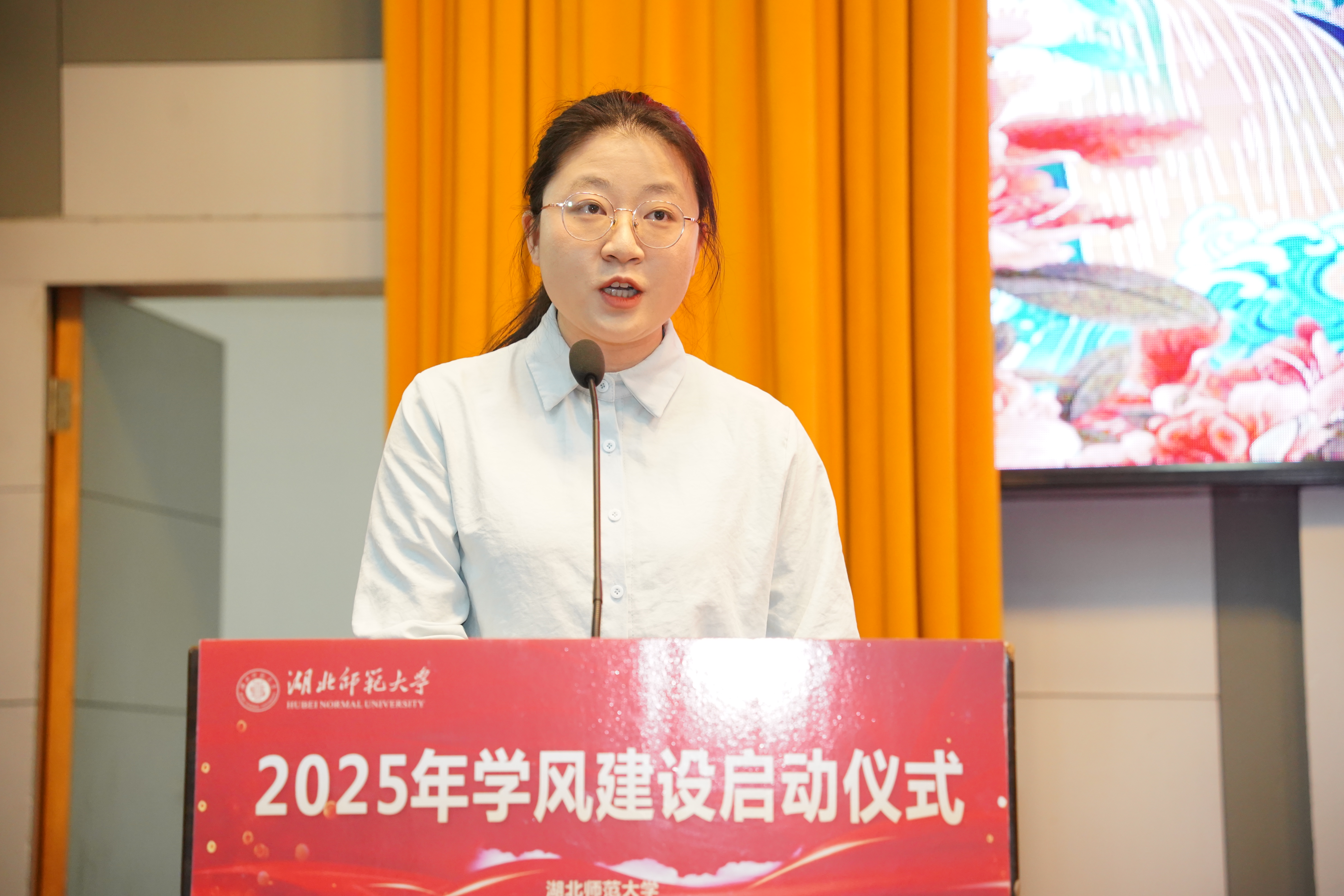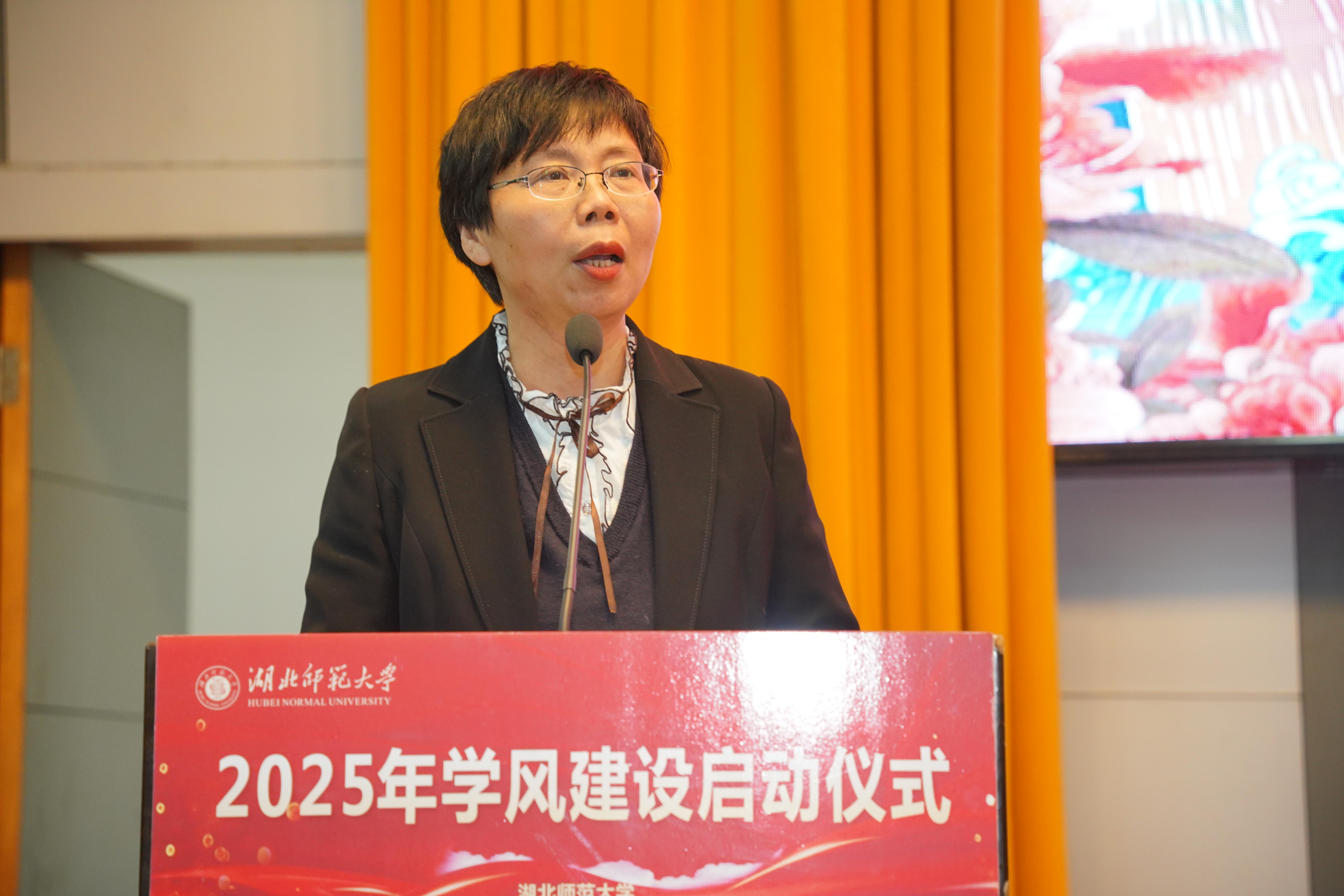 教学督导邹从容教授结合工作职责进行了发言,她表示,作为一名教学督导,深知优良学风在助力学校高质量发展中的重要作用,希望全校师生携手共进,涵养优良学风,为新时代湖师学风建设交上一份满意的答卷。