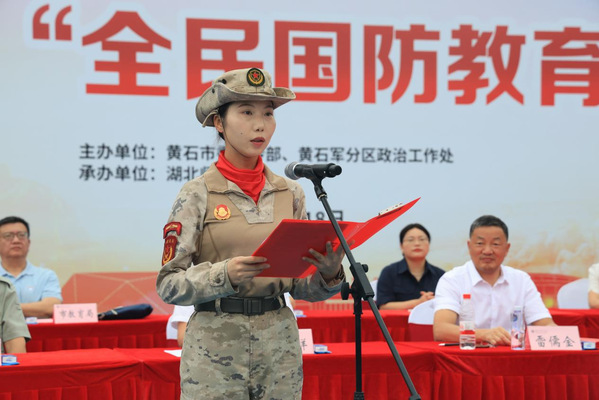 本网讯 9月18日上午,黄石市2025年“全民国防教育日”主题活动在我校隆重举行。市委常委、宣传部部长王玲,市委常委、黄石军分区大校司令员贾宇峰,武警黄石支队支队长吴永刚,市委宣传部副部长、市文联党组书记、主席梅定祥、校党委副书记、校长雷儒金,党委副书记余涛等出席活动。市国防教育工作联席会议成员单位、各县(市、区)党委宣传部、新港园区党政办负责人以及我校约3600名学生共同参加活动。