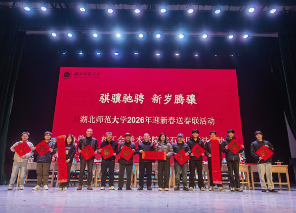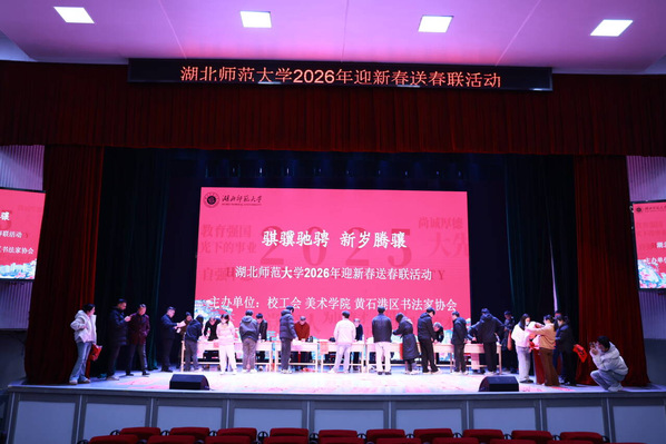 本网讯 灵蛇辞旧岁,骏马启新程。为弘扬中华优秀传统文化,营造喜庆祥和的节日氛围,丰富教职工精神文化生活,12月30日上午,校工会在湖师大礼堂举办“骐骥驰骋,新岁腾骧”2026年迎新春送春联活动,以笔墨雅韵传递温暖祝福,让广大教职工提前感受到浓浓的年味。
