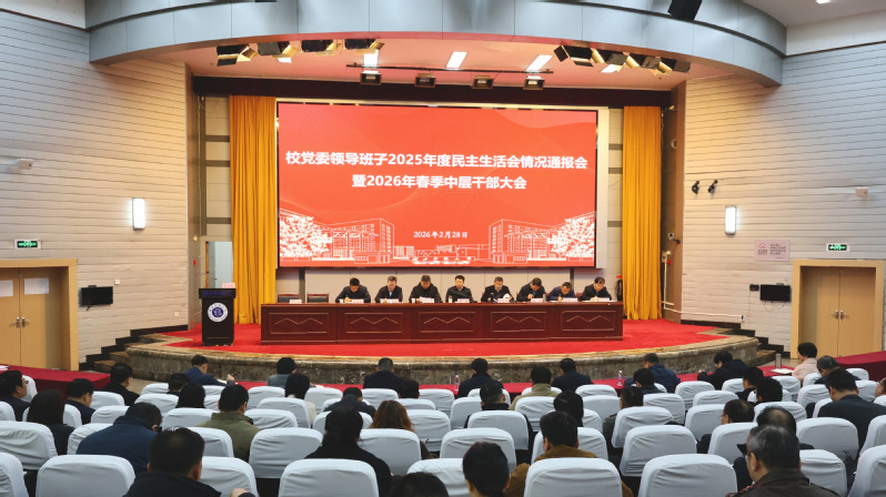 学校召开校党委领导班子2025年度民主生活会情况通报会暨2026年春季中层干部大会