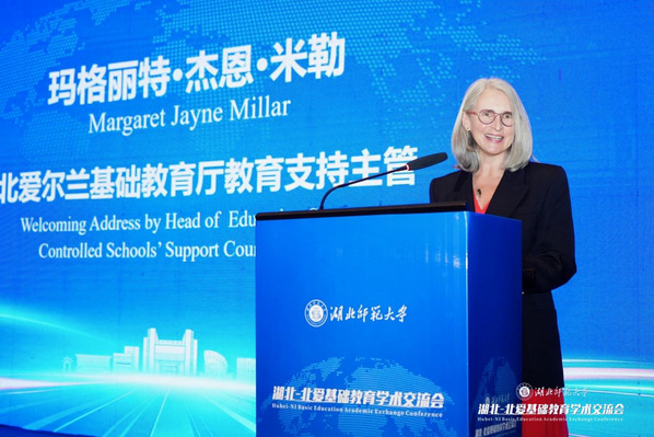 3月9日上午,交流会正式启幕。校长雷儒金主持开幕式,黄石市人民政府副市长郭双喜、北爱尔兰基础教育厅教育支持主管玛格丽特·杰恩·米勒分别致辞。郭双喜表示,希望以教育合作为抓手,推动黄石与北爱尔兰在基础教育领域形成更多务实成果,共同培育具备全球视野与跨文化沟通能力的新时代人才。玛格丽特·杰恩·米勒对深化双方合作寄予厚望,期待携手探索构建更加包容、多元的教育发展生态。