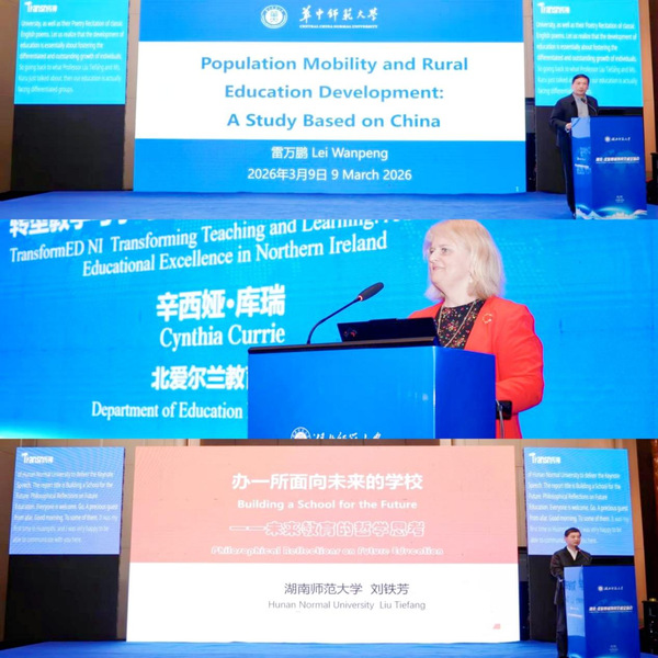 本次学术交流会设置主旨报告与平行论坛两个板块,共举行3场主旨报告、2场平行论坛及17场专题发言,汇聚湖北-北爱尔兰两地教育智慧为基础教育发展建言献策。湖南师范大学刘铁芳教授以教育哲学视角,系统阐释未来学校的形态特征与发展路径;北爱尔兰教育部辛西娅·库瑞分享了北爱以教学转型推动教育卓越发展的实践经验;华中师范大学雷万鹏教授立足人口流动时代背景,剖析我国乡村教育发展的机遇与挑战,为与会者提供了多元理论与实践参考。交流间隙,我校音乐舞蹈学院、外国语学院学生带来实习实践成果展示与经典英文诗歌朗诵,以艺术与语言为载体营造浓厚的人文交流氛围。