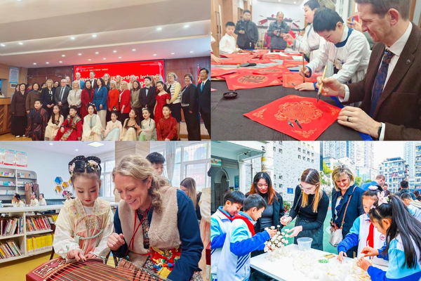 3月10日,北爱尔兰基础教育代表团走进黄石市广场路小学,参与“面向未来的教育:创新、融合与卓越”主题文化体验活动,实现学术研讨向跨文化实践的延伸。代表团成员沉浸式体验书法、扎染、香囊制作等中华优秀传统文化项目,观摩机器人社团展演与水火箭发射等科创实践。广场路小学学生以流利英语与来宾互动交流,其深厚的文化积淀与开阔的国际视野获代表团高度赞誉。