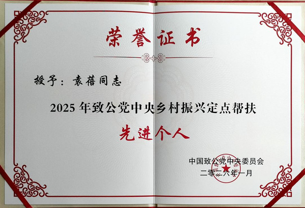 本网讯 近日,致公党中央对2025年参与乡村振兴定点帮扶先进集体和先进个人进行表彰。致公党湖北师范大学支部荣获“2025年参与致公党中央乡村振兴定点帮扶先进集体”称号,支部主委、教务处副处长袁蓓荣获“2025年参与致公党中央乡村振兴定点帮扶先进个人”称号。