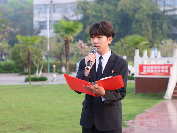 上午6时50分,国旗护卫队步履铿锵,护送国旗入场。伴随着雄壮的国歌声,鲜艳的五星红旗冉冉升起,全场师生高唱国歌、行注目礼,爱国荣校之情油然而生。